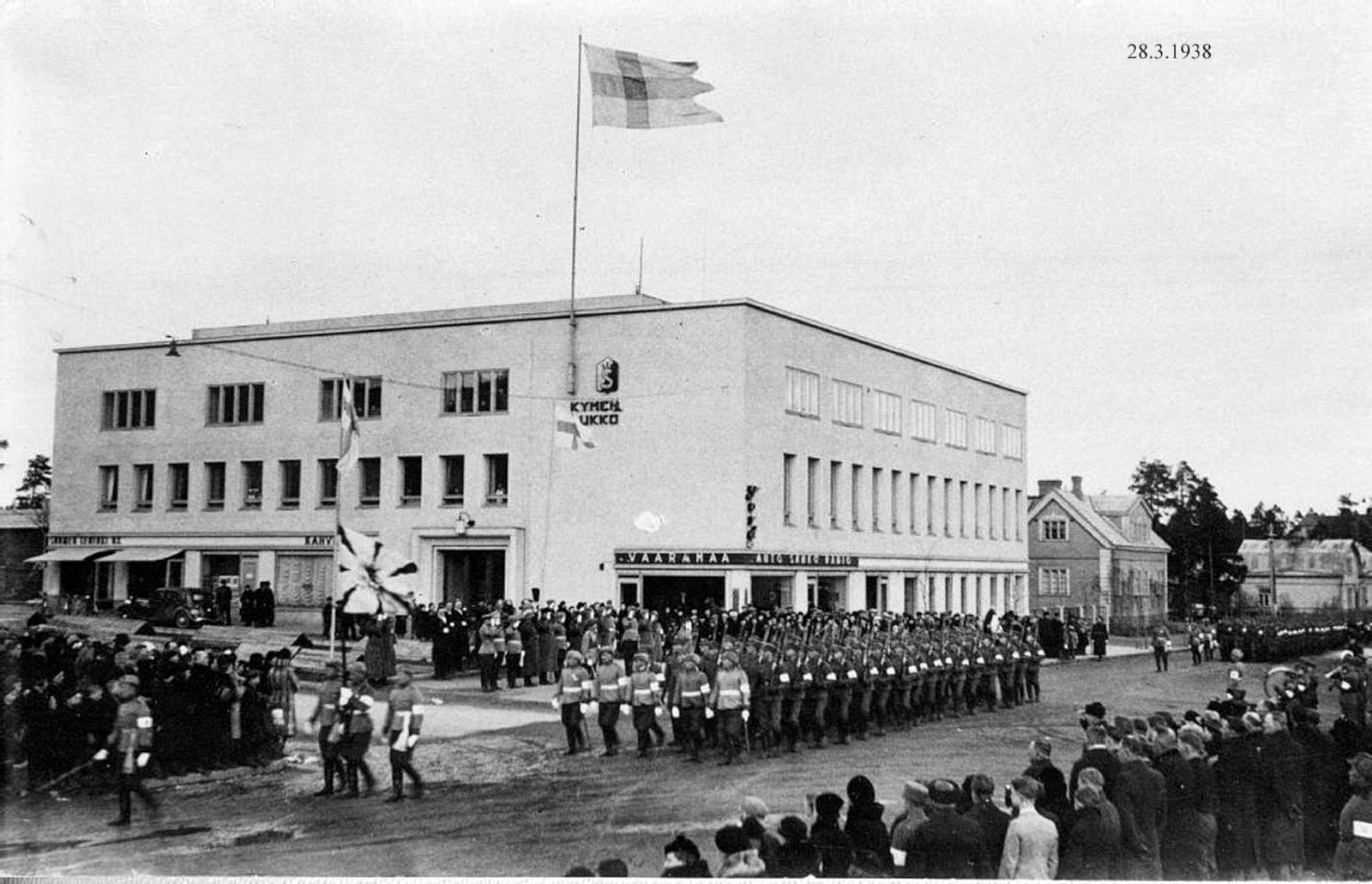 Historialliset kuvat ovat Poikilo-museoiden kokoelmista. 28.3.1938-kuva: Keski-Suomen Rykmentin juhlaparaati rykmentin 20-vuotisjuhlapäivänä. Vuoden 1959-kuvat ovat Eero Suikin ottamia.
